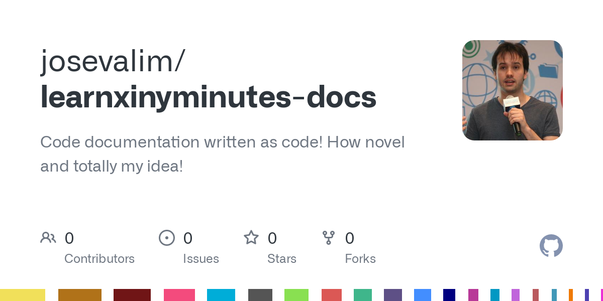 Code documentation written as code! How novel and totally my idea! - GitHub - josevalim/learnxinyminutes-docs: Code documentation written as code! How novel and totally my idea!