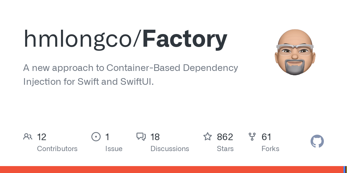A new approach to Container-Based Dependency Injection for Swift and SwiftUI. - GitHub - hmlongco/Factory: A new approach to Container-Based Dependency Injection for Swift and SwiftUI.