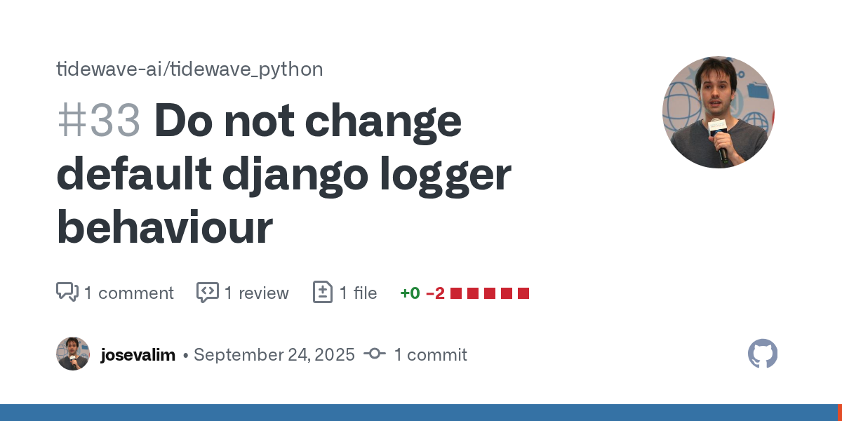 josevalim merged tidewave-ai/tidewave_python#33 · September 24, 2025 11:43 Do not change default django logger behaviour #33 +0 -