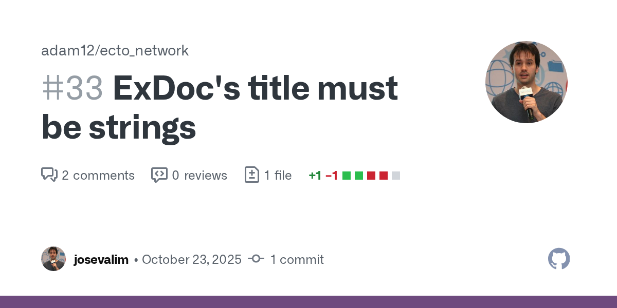 ExDoc's title must be strings by josevalim · Pull Request #33 · adam12/ecto_network