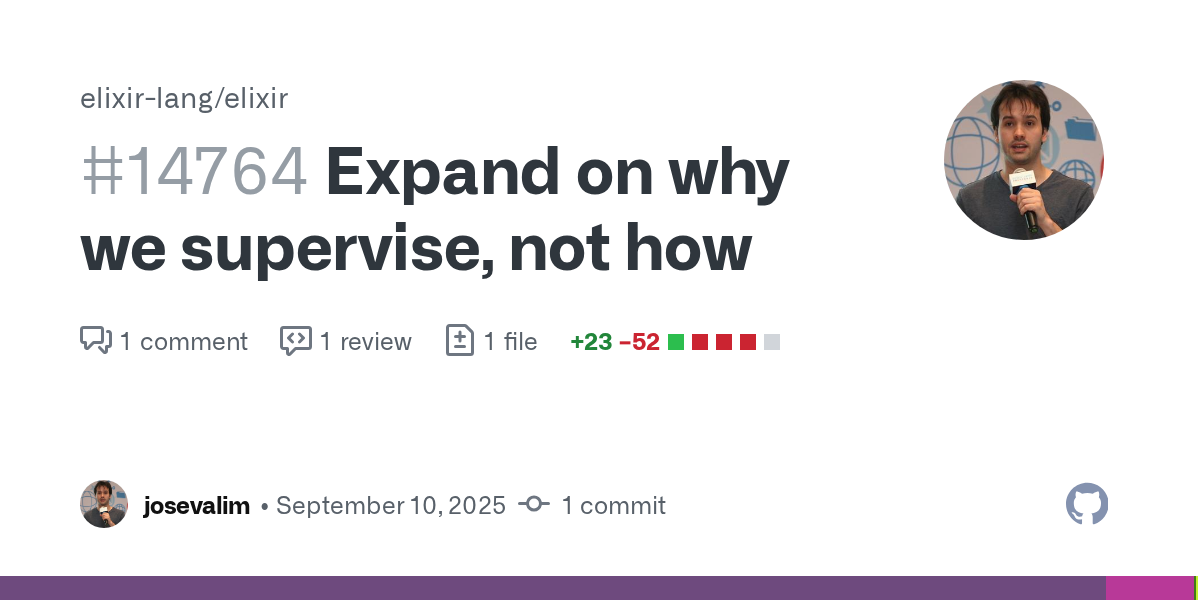 Expand on why we supervise, not how by josevalim · Pull Request #14764 · elixir-lang/elixir