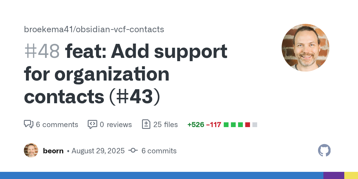 feat: Add support for organization contacts (#43) by beorn · Pull Request #48 · broekema41/obsidian-vcf-contacts