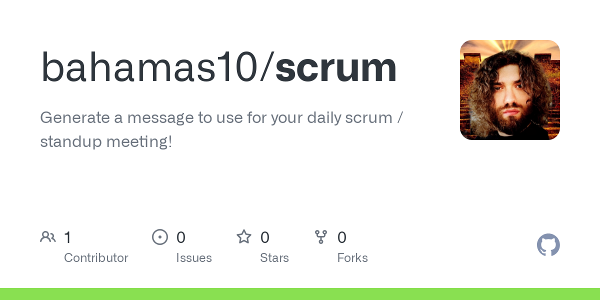 GitHub - bahamas10/scrum: Generate a message to use for your daily scrum / standup meeting!
