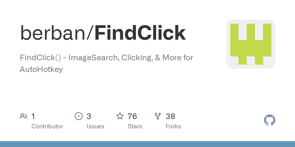 GitHub - berban/FindClick: FindClick() - ImageSearch, Clicking, & More for AutoHotkey