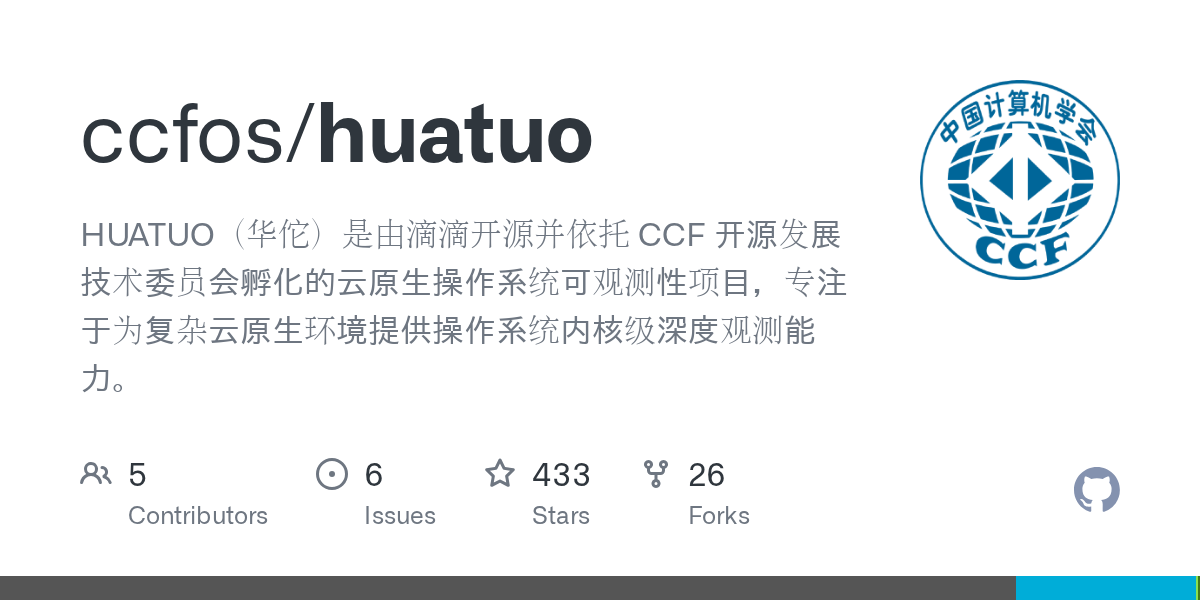 GitHub - ccfos/huatuo: HUATUO(华佗)是由滴滴开源并依托 CCF 开源发展技术委员会孵化的云原生操作系统可观测性项目,专注于为复杂云原生环境提供操作系统内核级深度观测能力。