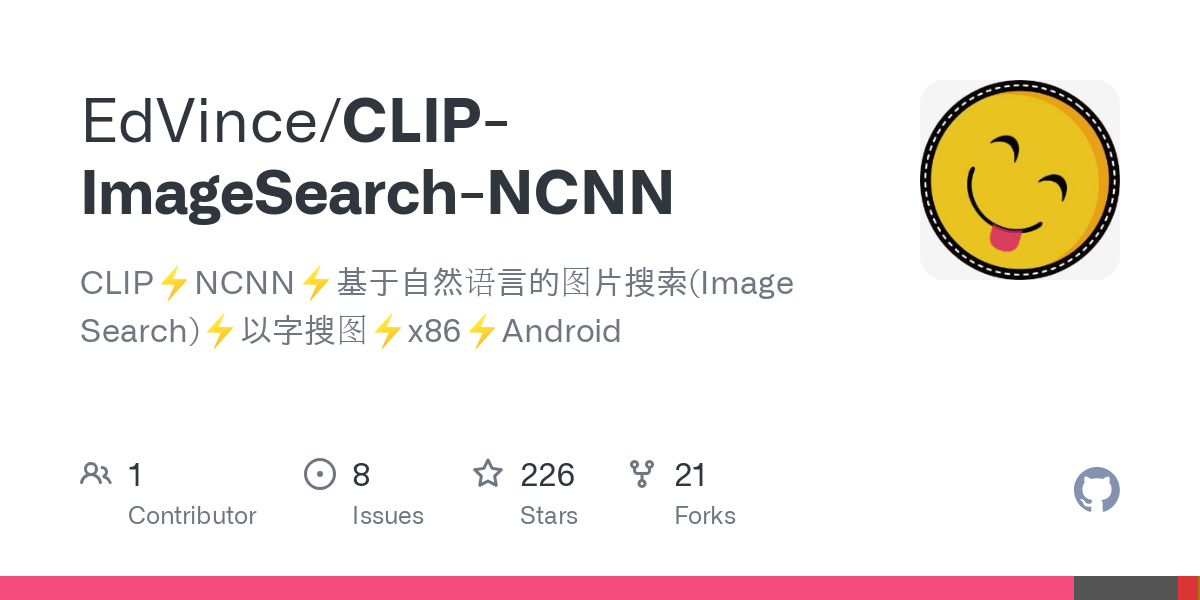 GitHub - EdVince/CLIP-ImageSearch-NCNN: CLIP⚡NCNN⚡基于自然语言的图片搜索(Image Search)⚡以字搜图⚡x86⚡Android