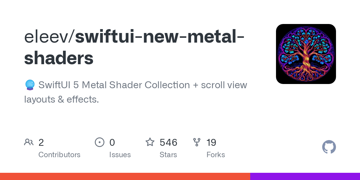 GitHub - eleev/swiftui-new-metal-shaders: 🔮 SwiftUI 5 Metal Shader Collection + scroll view layouts & effects.