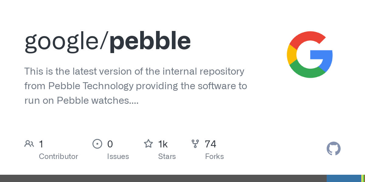 GitHub - google/pebble: This is the latest version of the internal repository from Pebble Technology providing the software to run on Pebble watches. Proprietary source code has been removed from this