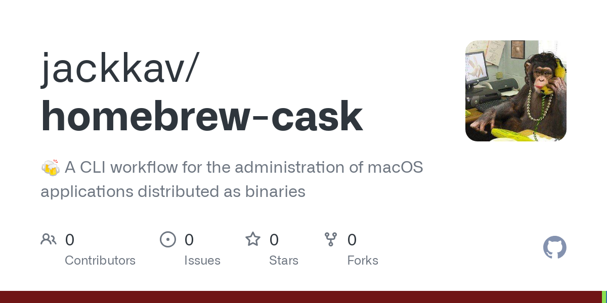 GitHub - jackkav/homebrew-cask: 🍻 A CLI workflow for the administration of macOS applications distributed as binaries