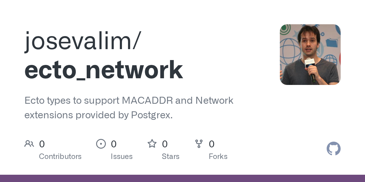 GitHub - josevalim/ecto_network: Ecto types to support MACADDR and Network extensions provided by Postgrex.