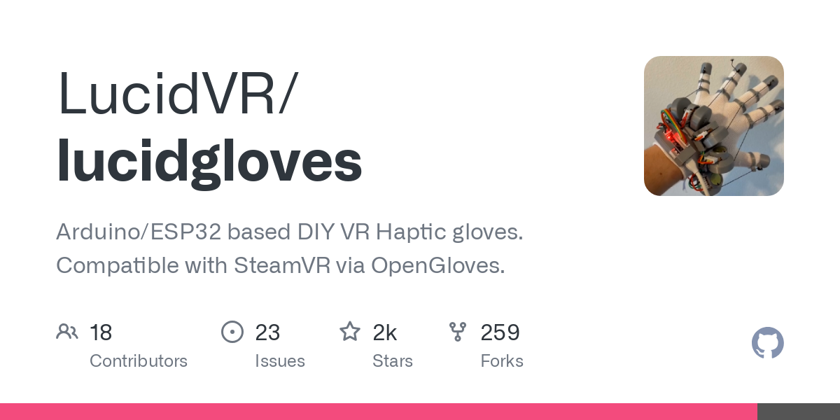 GitHub - LucidVR/lucidgloves: Arduino/ESP32 based DIY VR Haptic gloves. Compatible with SteamVR via OpenGloves.