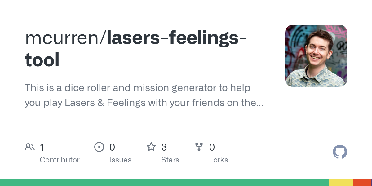 GitHub - mcurren/lasers-feelings-tool: This is a dice roller and mission generator to help you play Lasers & Feelings with your friends on the go. Written entirely in VueJS.