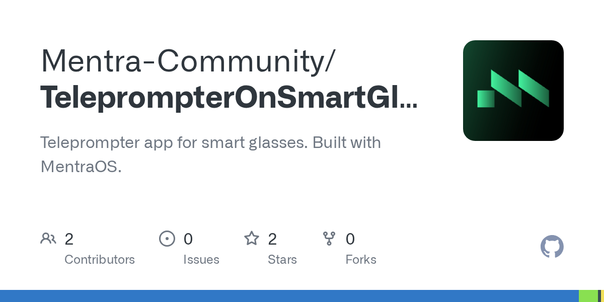 GitHub - Mentra-Community/TeleprompterOnSmartGlasses: Teleprompter app for smart glasses. Built with MentraOS.