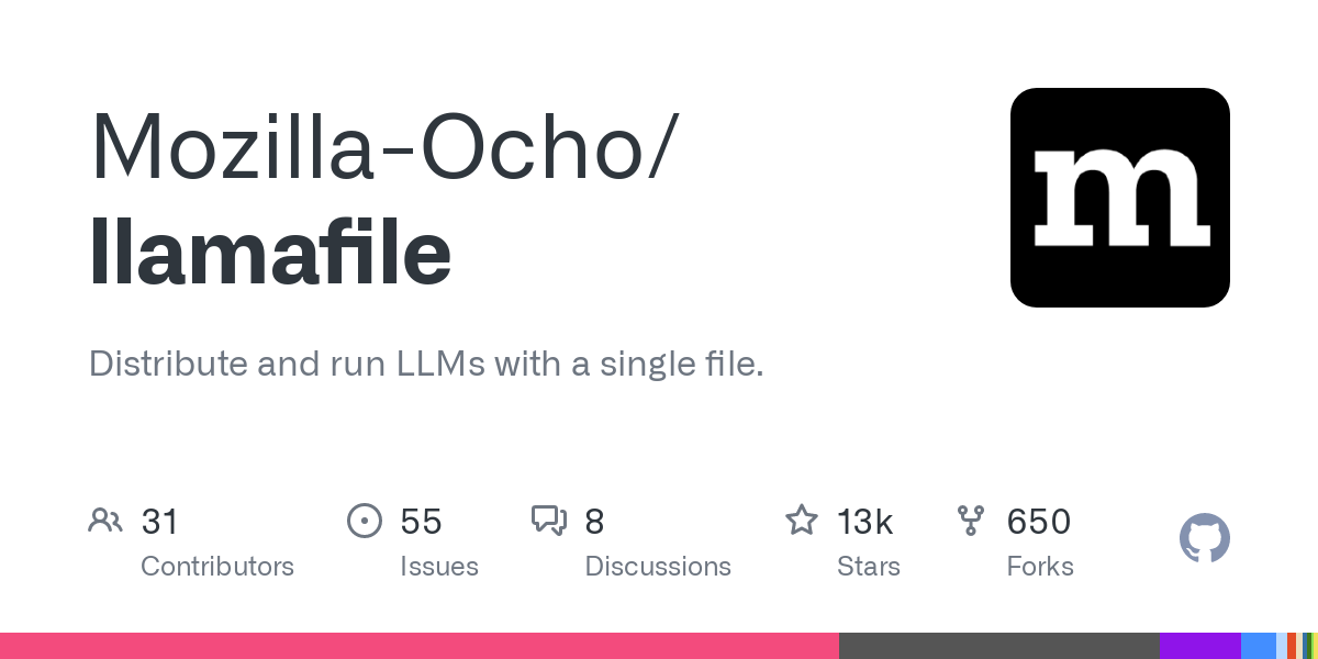 Distribute and run LLMs with a single file. Contribute to Mozilla-Ocho/llamafile development by creating an account on GitHub.