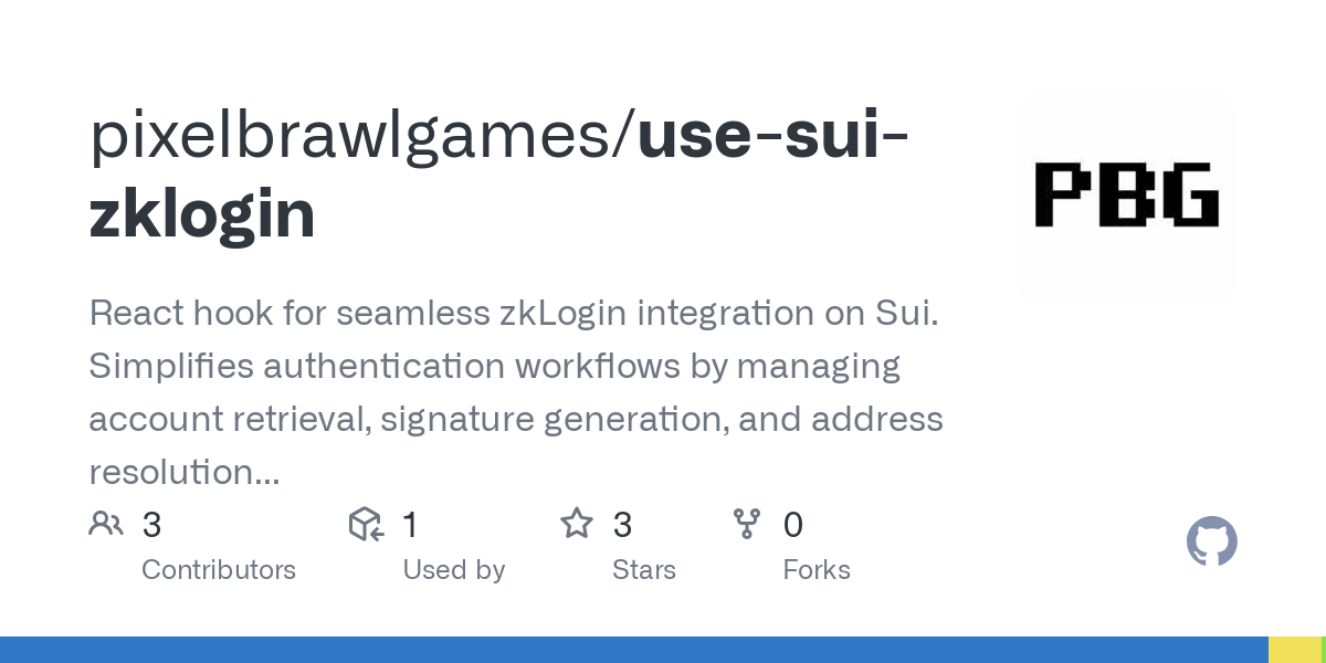 GitHub - pixelbrawlgames/use-sui-zklogin: React hook for seamless zkLogin integration on Sui. Simplifies authentication workflows by managing account retrieval, signature generation, and address resol
