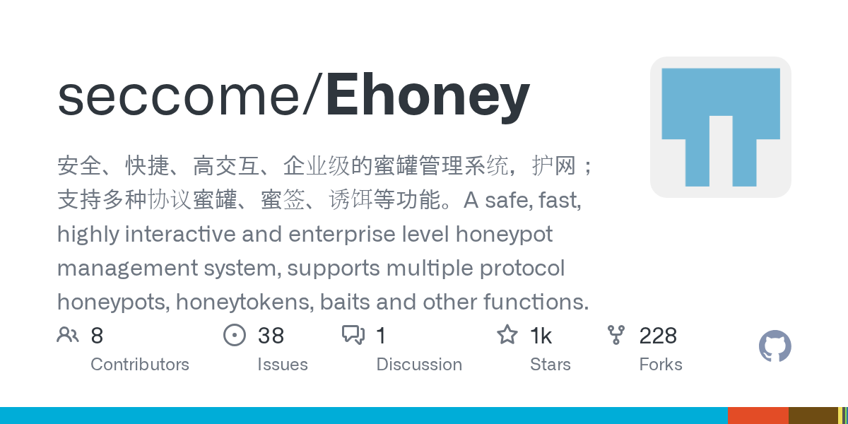 GitHub - seccome/Ehoney: 安全、快捷、高交互、企业级的蜜罐管理系统,护网;支持多种协议蜜罐、蜜签、诱饵等功能。A safe, fast, highly interactive and enterprise level honeypot management system, supports multiple protocol honeypots, honeytokens,
