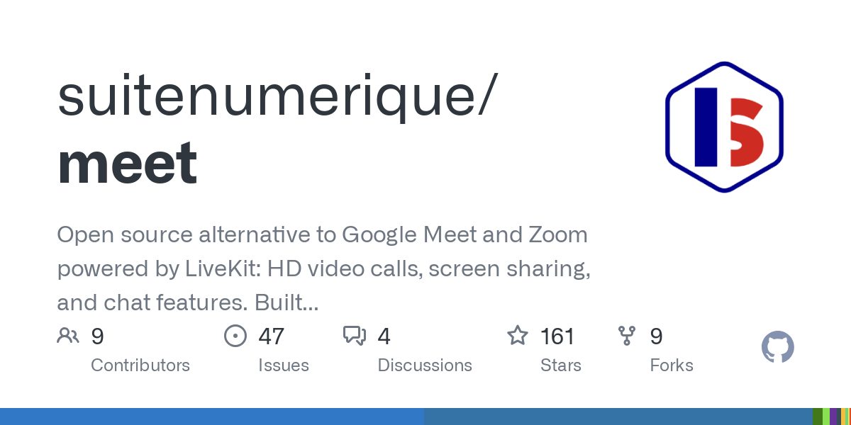 GitHub - suitenumerique/meet: Open source alternative to Google Meet and Zoom powered by LiveKit: HD video calls, screen sharing, and chat features. Built with Django and React.