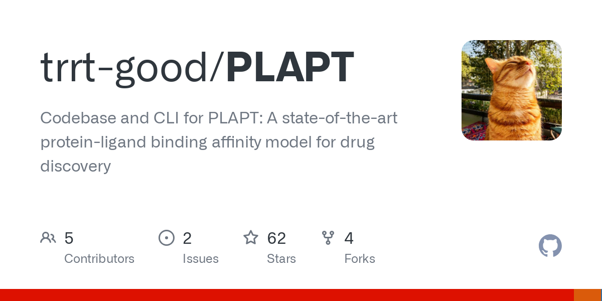 GitHub - trrt-good/PLAPT: Codebase and CLI for PLAPT: A state-of-the-art protein-ligand binding affinity model for drug discovery