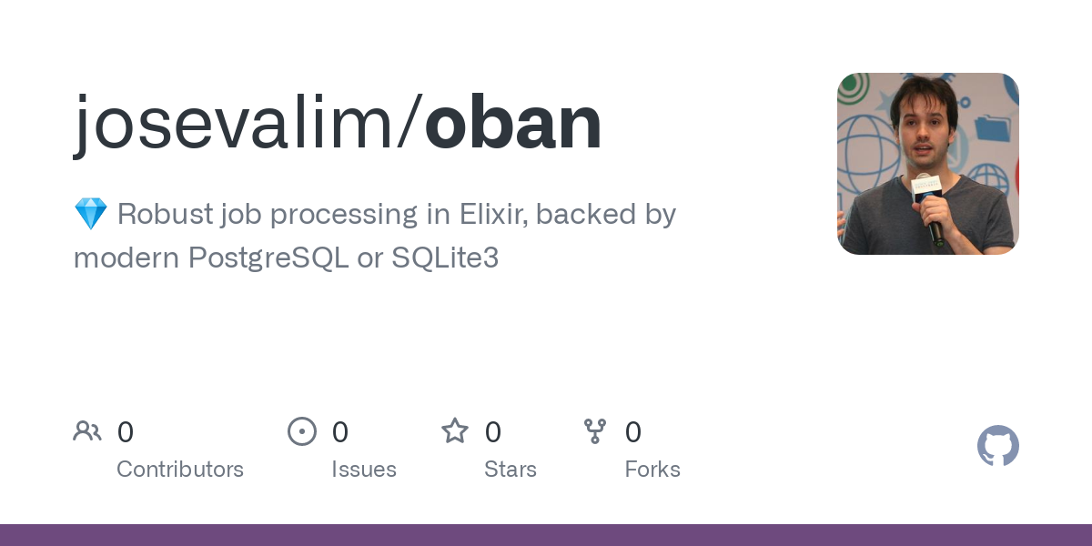 💎 Robust job processing in Elixir, backed by modern PostgreSQL or SQLite3 - GitHub - josevalim/oban: 💎 Robust job processing in Elixir, backed by modern PostgreSQL or SQLite3