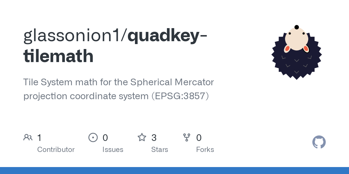 GitHub - glassonion1/quadkey-tilemath: Tile System math for the Spherical Mercator projection coordinate system (EPSG:3857)