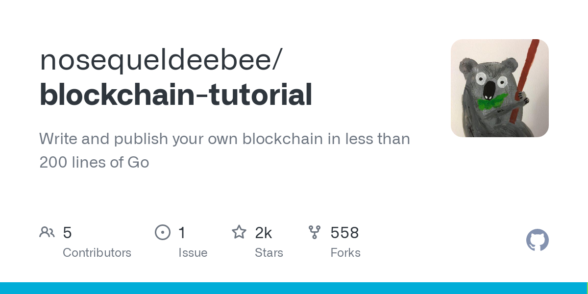GitHub - nosequeldeebee/blockchain-tutorial: Write and publish your own blockchain in less than 200 lines of Go