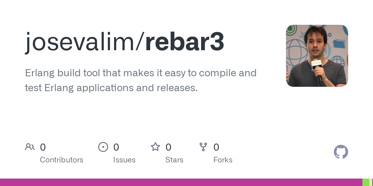 GitHub - josevalim/rebar3: Erlang build tool that makes it easy to compile and test Erlang applications and releases.