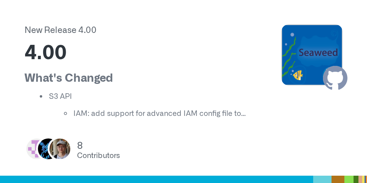 What's Changed S3 API IAM: add support for advanced IAM config file to server command by @nmcc1212 in #7317 S3: adjust for loading credentials by @chrislusf in #7400 s3: fix if-match error by @e...