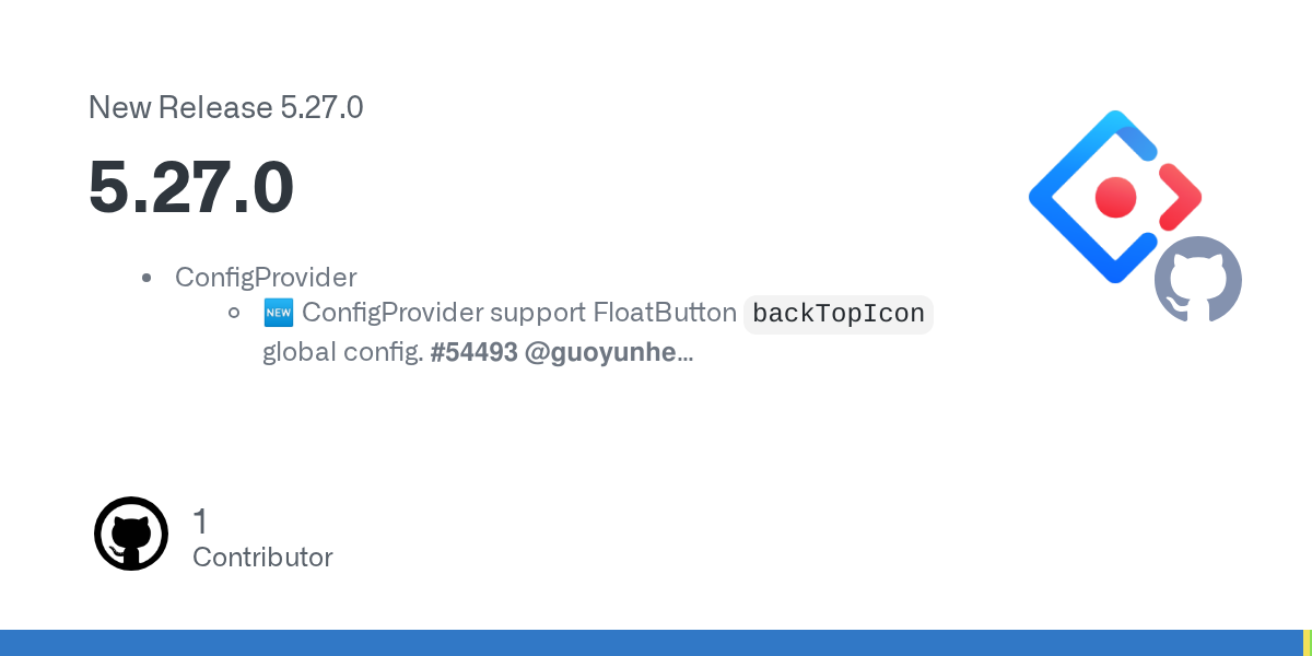 ConfigProvider 🆕 ConfigProvider support FloatButton backTopIcon global config. #54493 @guoyunhe 🆕 ConfigProvider support config Empty image globally. #54502 @guoyunhe 🆕 ConfigProvider support Uplo...