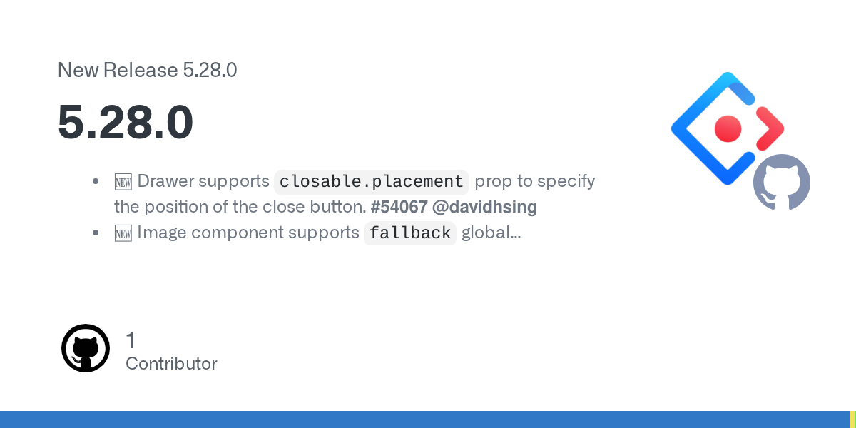 ๐ Drawer supports closable.placement prop to specify the position of the close button. #54067 @davidhsing ๐ Image component supports fallback global configuration. #54702 @Jiyur ๐ QRCode component ...