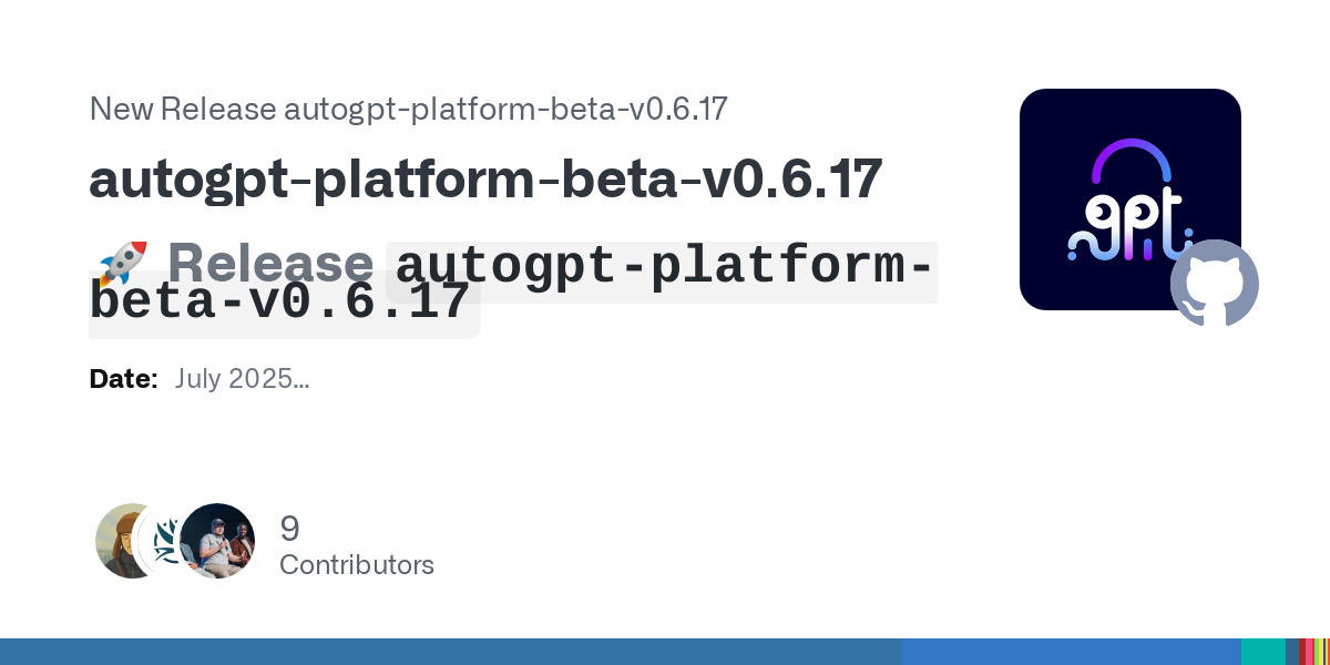 🚀 Release autogpt-platform-beta-v0.6.17 Date: July 2025 🔥 What's New? New Features #10393 - Add Excel support to ReadSpreadsheetBlock and introduced FileReadBlock (by @majdyz) #10394 - Add prefet...