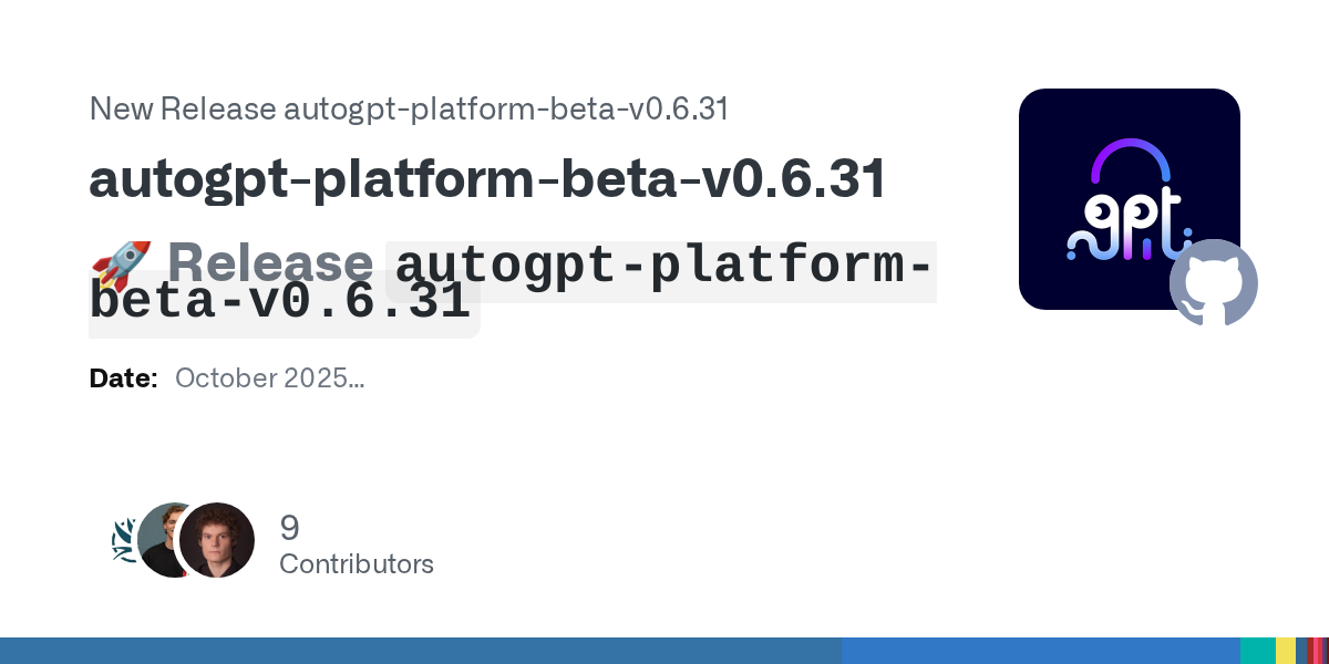 🚀 Release autogpt-platform-beta-v0.6.31 Date: October 2025 🔥 What's New? New Features #10978 - Implement clean k6 load testing infrastructure (by @majdyz) #10985 - Enhance database indexes for Ag...