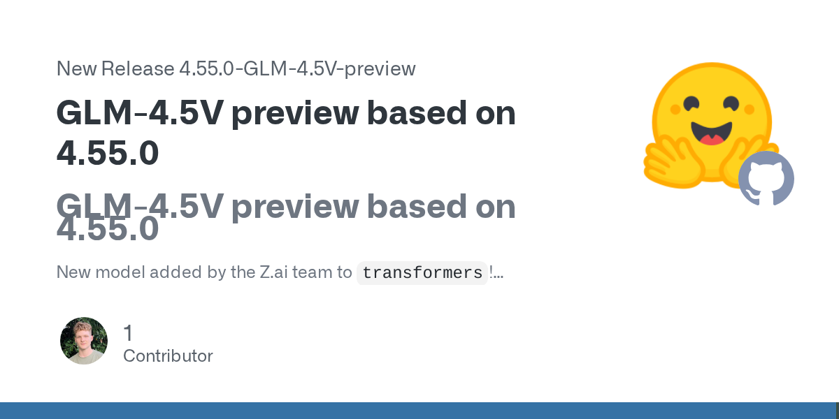 GLM-4.5V preview based on 4.55.0 New model added by the Z.ai team to transformers! GLM-4.5V is a new multimodal reasoning model based on GLM-4.5-Air, which has 106B total and 12B active parameters....
