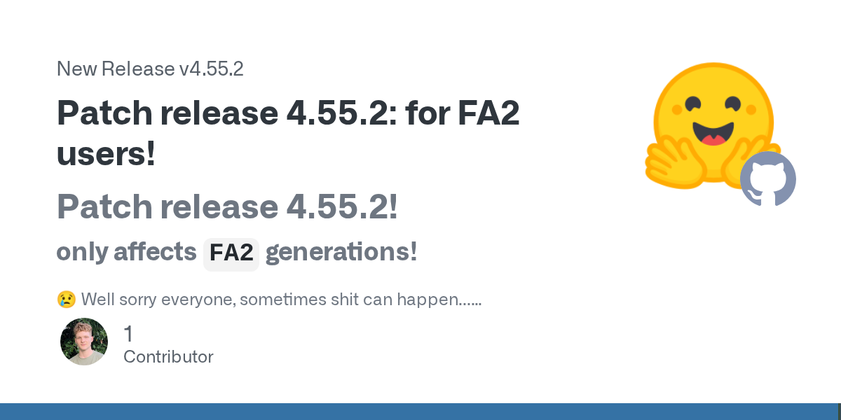 Release Patch release 4.55.2: for FA2 users! Ā· huggingface/transformers