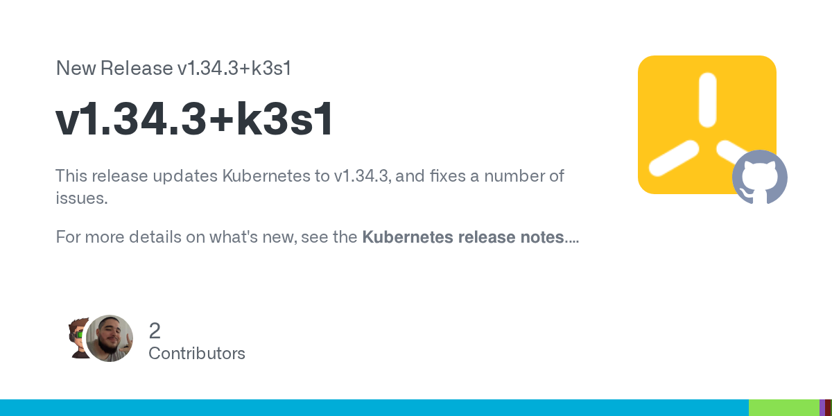 This release updates Kubernetes to v1.34.3, and fixes a number of issues. For more details on what's new, see the Kubernetes release notes. Changes since v1.34.2+k3s1: Update busybox to 1.37.0 (#1...