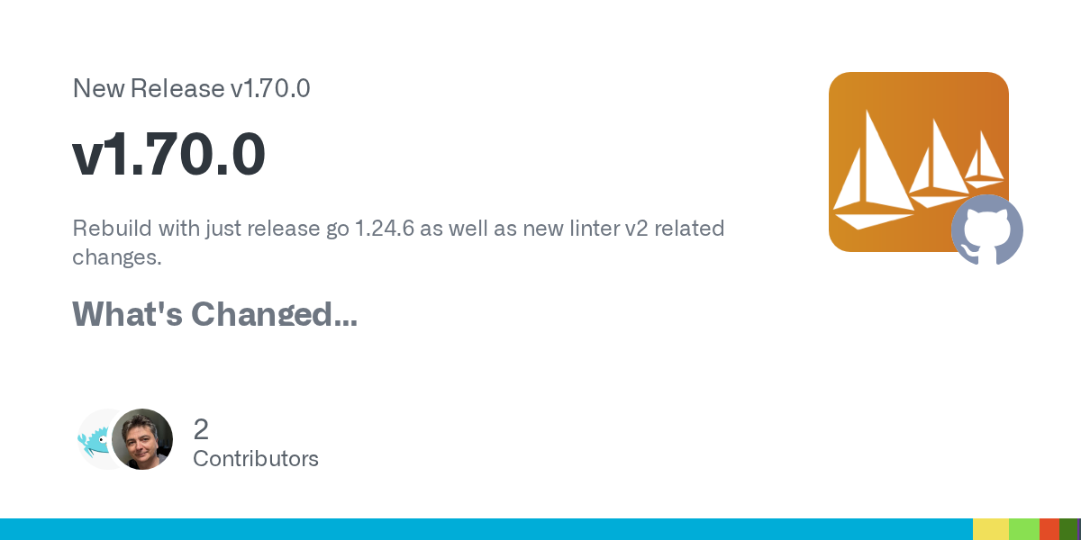 Rebuild with just release go 1.24.6 as well as new linter v2 related changes. What's Changed Go 1.24 updates by @ldemailly in #1073 refactor: replace sequential assignments with explicit variable ...