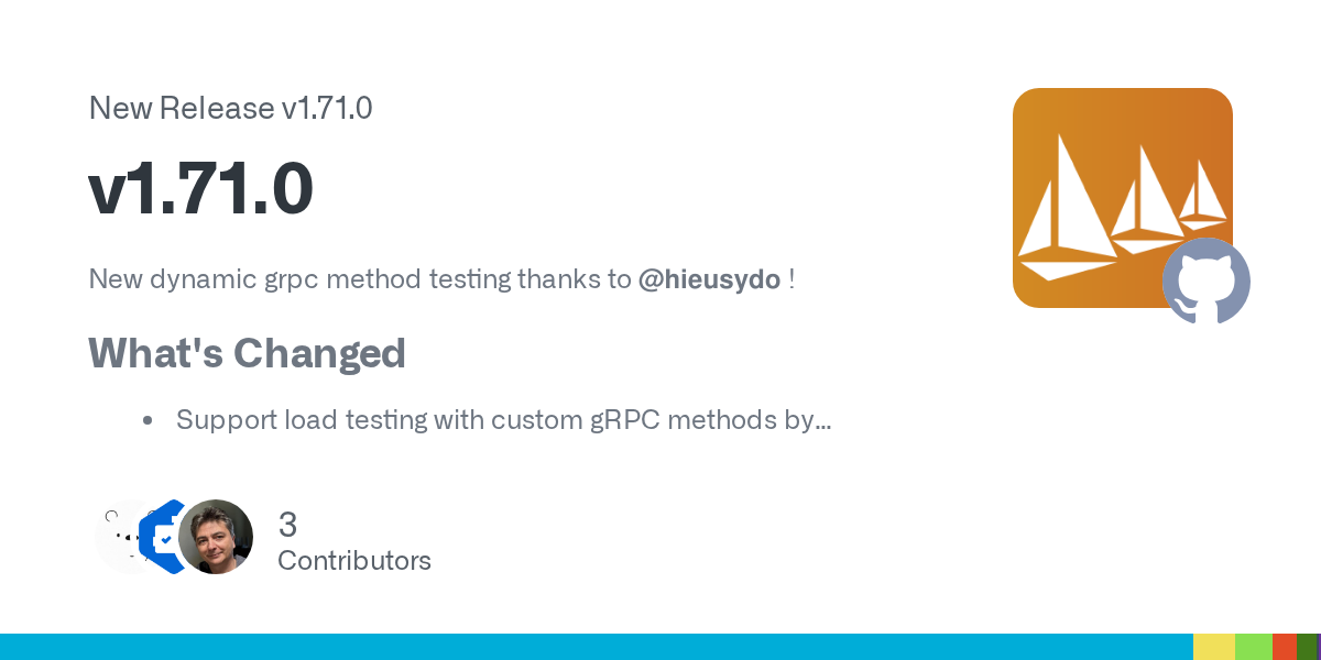 New dynamic grpc method testing thanks to @hieusydo ! What's Changed Support load testing with custom gRPC methods by @hieusydo in #1064 Bump golang.org/x/net from 0.42.0 to 0.43.0 in the go-x gro...