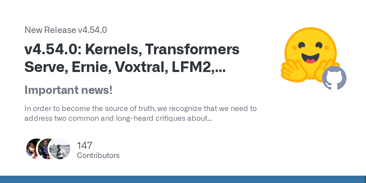 Release v4.54.0: Kernels, Transformers Serve, Ernie, Voxtral, LFM2, DeepSeek v2, ModernBERT Decoder... · huggingface/transformers