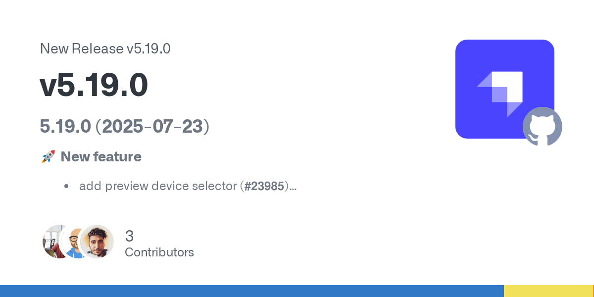 5.19.0 (2025-07-23) ๐ New feature add preview device selector (#23985) cloud-cli: support async project creation notifications (a970fea681) ๐ฅ Bug fix sign file URLs in upload service and in grap...