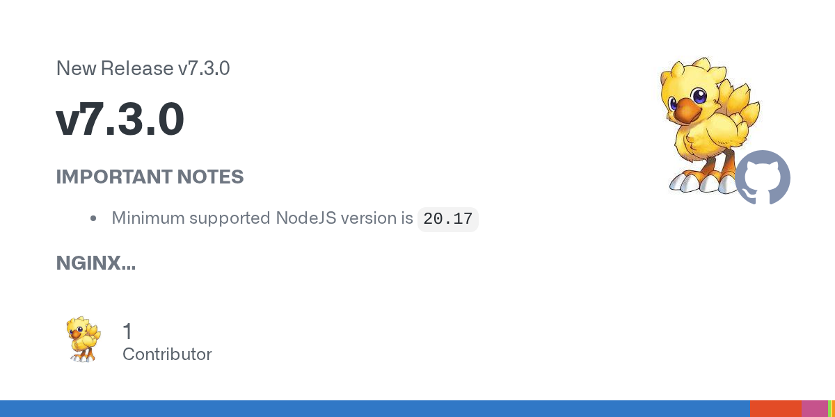 IMPORTANT NOTES Minimum supported NodeJS version is 20.17 NGINX Disable request buffering on upload endpoints to fix HTTP request timeouts: d1a35e8 Plugins/Themes/Embed API Add server API (htt...