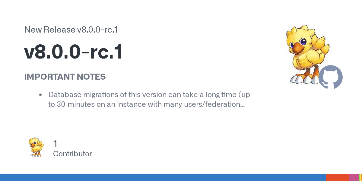 IMPORTANT NOTES Database migrations of this version can take a long time (up to 30 minutes on an instance with many users/federation actors) You need to manually execute a migration script after y...