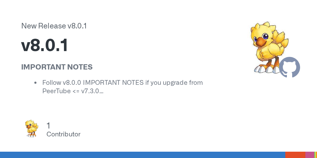 IMPORTANT NOTES Follow v8.0.0 IMPORTANT NOTES if you upgrade from PeerTube <= v7.3.0 NGINX Fix HTTP3 compatibility issue in nginx template: 412df6c Bug fixes Prevent transcription error when t...