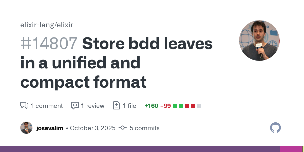 josevalim merged elixir-lang/elixir#14807 · October 4, 2025 04:12 Store bdd leaves in a unified and compact format #14807 +160 -9