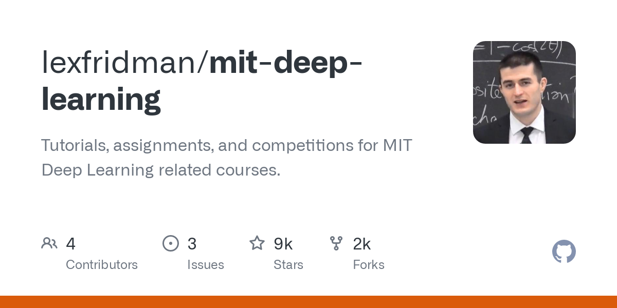 GitHub - lexfridman/mit-deep-learning: Tutorials, assignments, and competitions for MIT Deep Learning related courses.