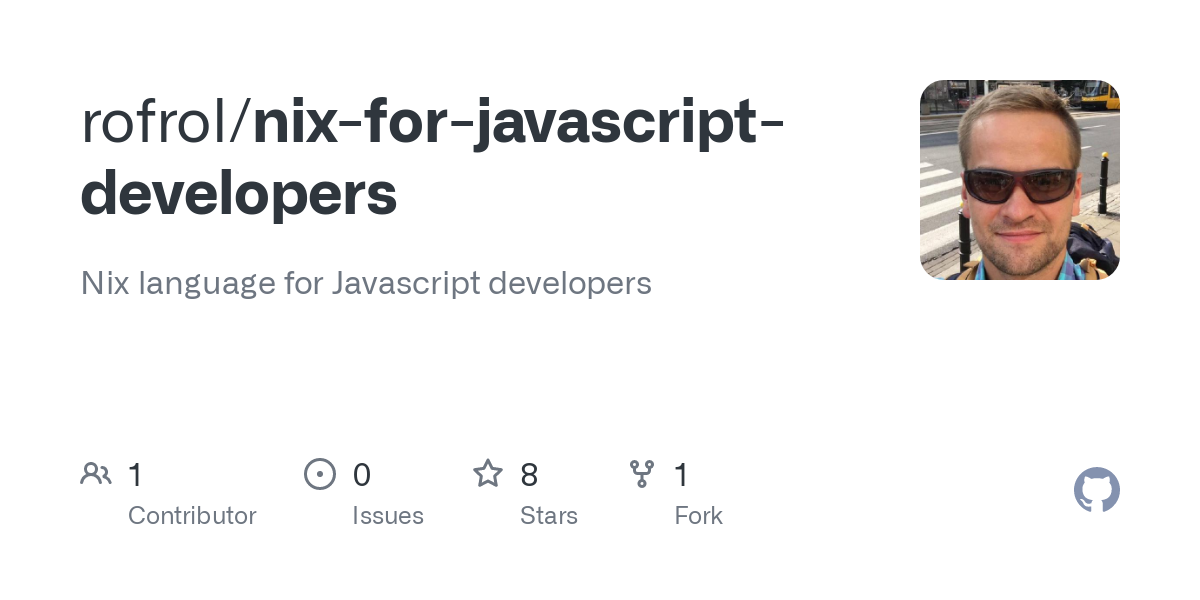 Nix language for Javascript developers. Contribute to rofrol/nix-for-javascript-developers development by creating an account on GitHub.