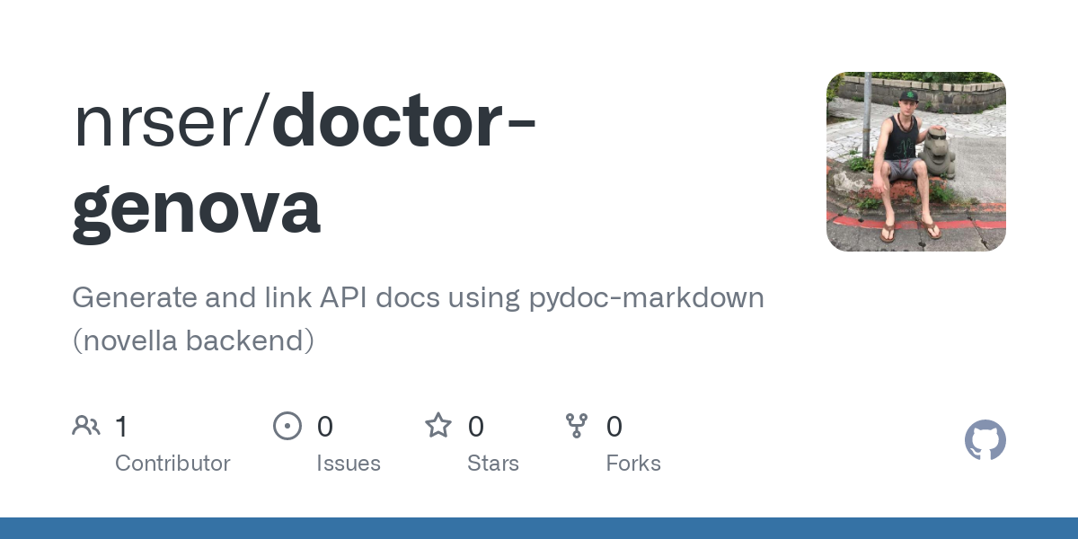 GitHub - nrser/doctor-genova: Generate and link API docs using pydoc-markdown (novella backend)