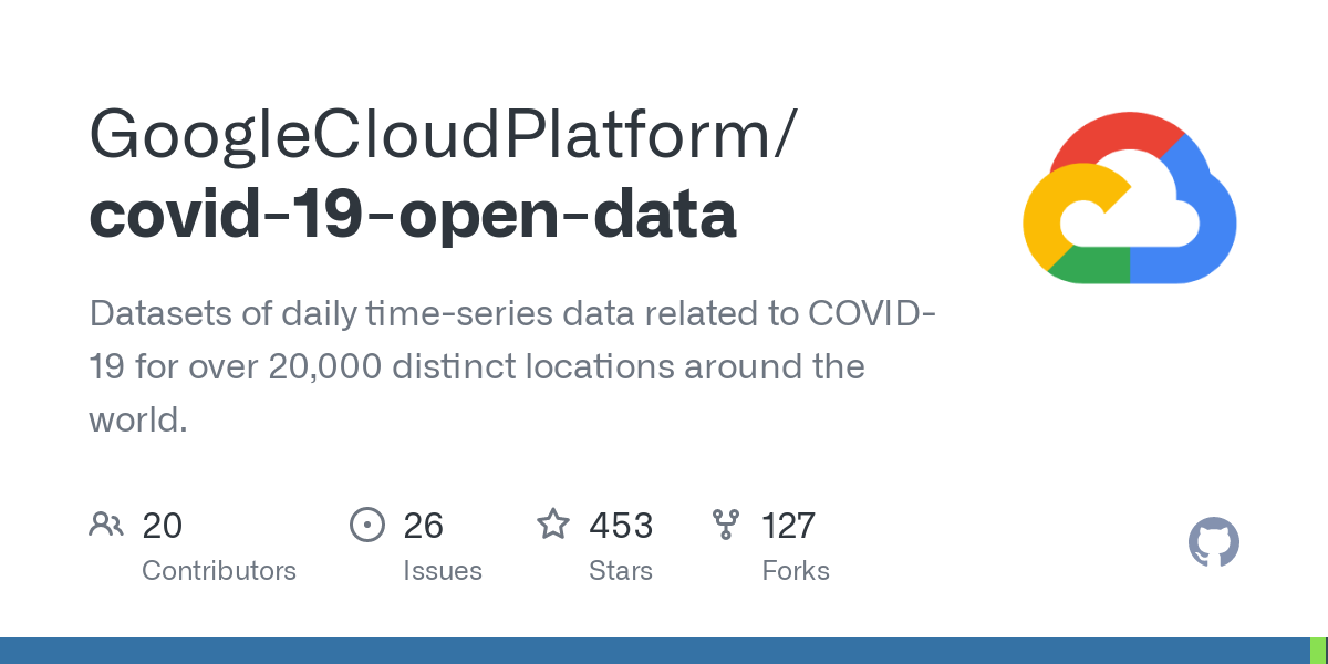 GitHub - GoogleCloudPlatform/covid-19-open-data: Datasets of daily time-series data related to COVID-19 for over 20,000 distinct locations around the world.